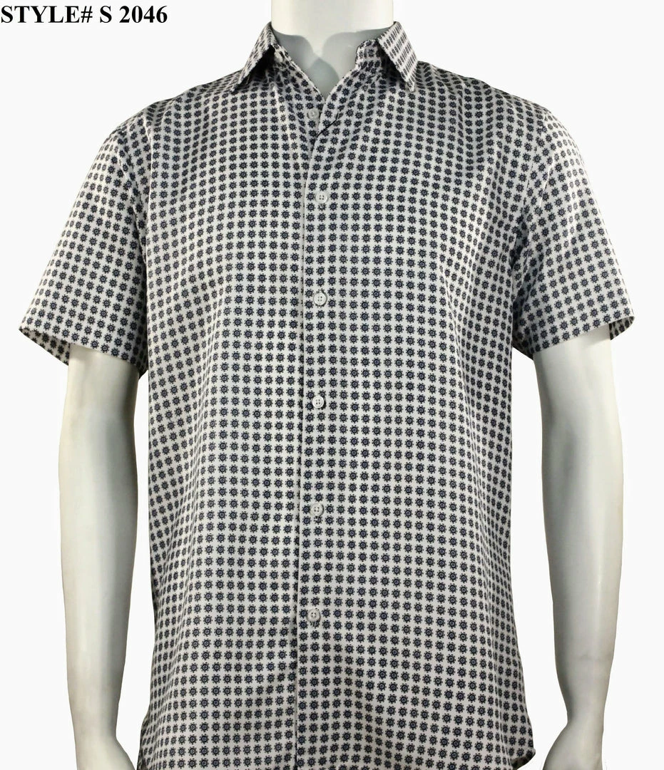 New 😍 Sangi Short Sleeve Button Down Casual Printed Men’s πŸ‘• Shirt – Circle Pattern White #S 2046 πŸ”₯